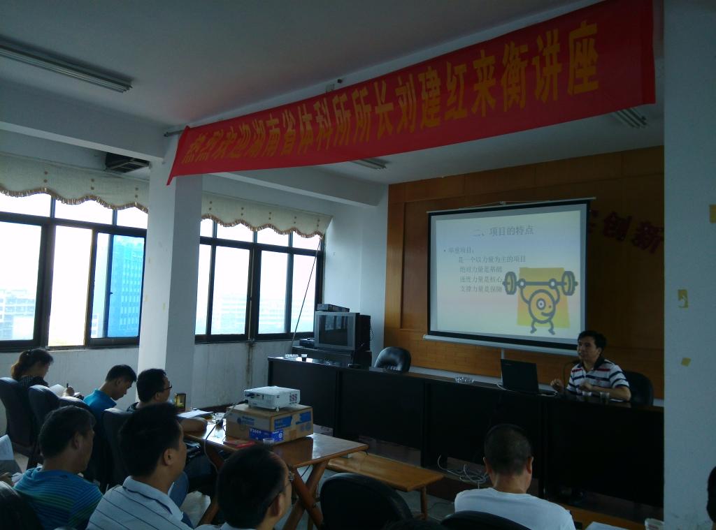2014年6月18号上午,湖南省体育局体科所所长刘建红应邀来衡进行学术讲座,内容是关于专项训练与运动营养以及赛前训练注意事项等。参加本次学术活动的有市体育局领导和预计参加今年9月份省运会的衡阳市体育局所属市体校、市游泳运动学校、县区体育系统的教练员们。我院计划今年参加湖南省第十届大运会的教练员们前往市体育局八楼会议室,与广大体育教学训练界同仁一起,聆听了本次学术讲座。通过本次学术讲座,我院教练员们纷纷表示进一步开拓了视野,并对今年参加省大运会有所帮助。