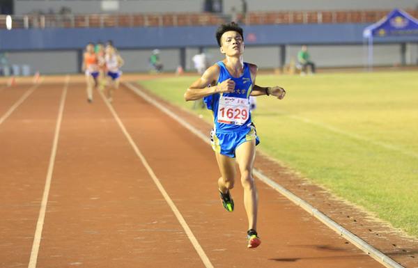 在7月23日结束的第十五届全国大学生田径锦标赛男子10000m甲A组(高水平运动员)的比赛中,我校参赛选手刘健一同学不畏强手,敢于拼搏,在最后的冲刺阶段,克服了下雨天气带来的不利影响,咬紧牙关第一个冲过了终点,获得了一枚金牌。这是我校体育运动史参加甲A组(高水平运动员)队以来获得的第一枚金牌。