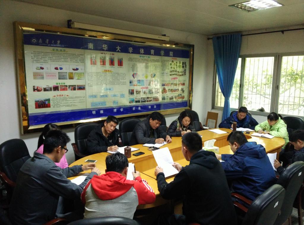 3月16日体育学院2016年度运动训练工作会议在学院会议室召开,院长谭志刚、书记廖卫红、副院长邹卫国、办公室主任龙冲、运动训练教研室主任周欣及全体教练员参会,会议由运动训练教研室主任周欣主持。