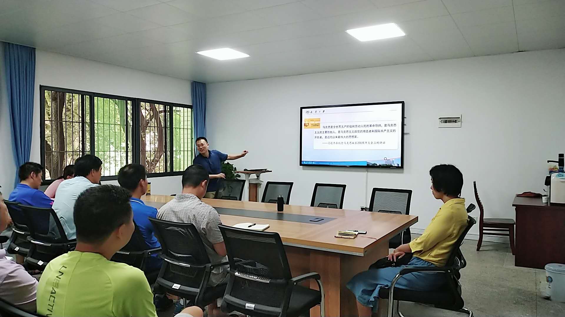 9月15日下午,体育学院党总支在学院二楼会议室开展理论学习中心组(扩大)第五次集集中学习。马克思主义学院院长、硕士生导师、黄秋生教授应邀给全体党员作理论辅导报告,报告专题为:《马克思的伟大人生及其启示》。体育学院院长、党总支书记谭志刚主持学习活动。学院全体党员参加了学习活动。