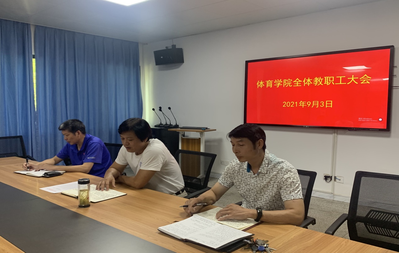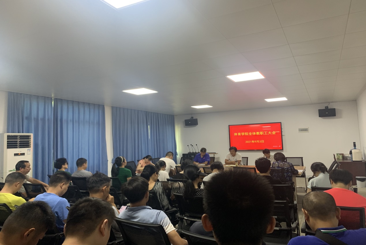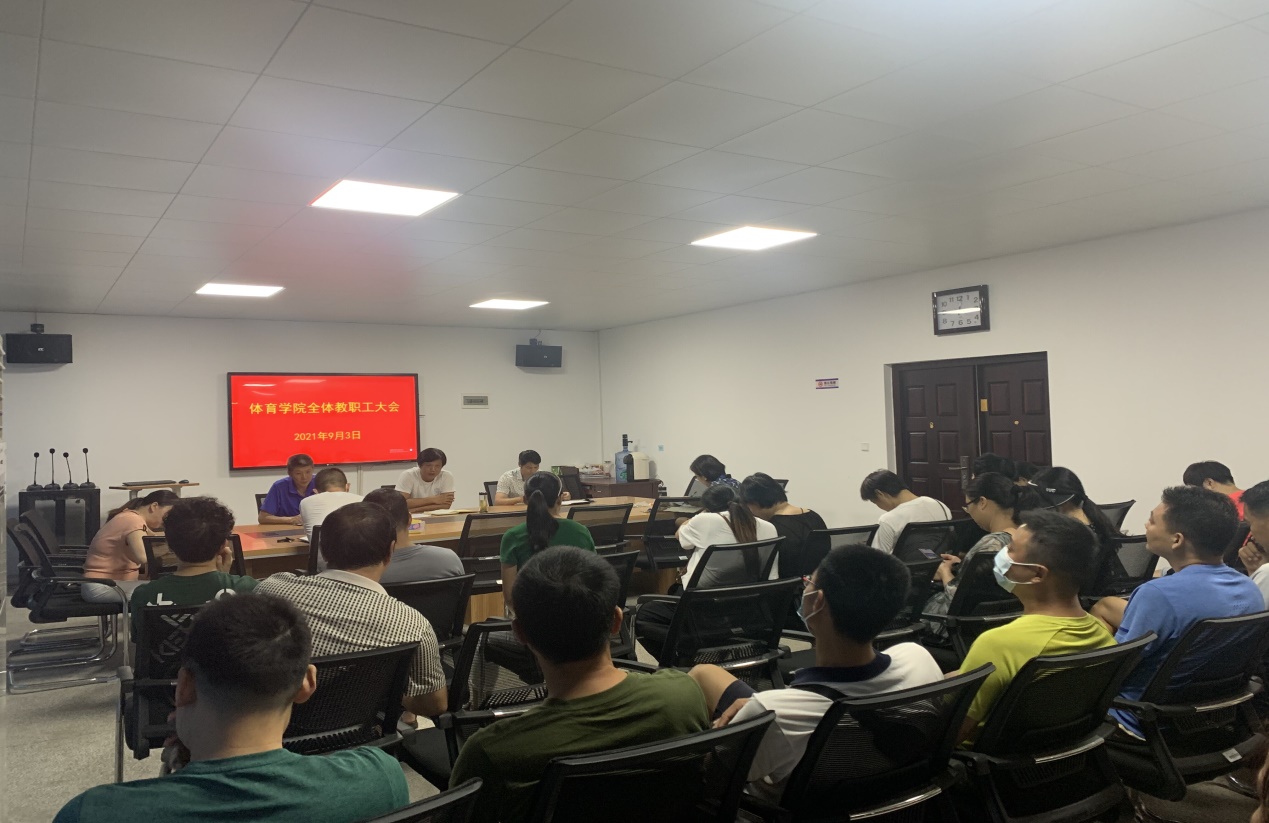 9月3日,体育学院在二楼会议室召开新学期全体教职工大会,安排部署秋季学期工作。学院领导班子成员、各科室(教研室)负责人、全体教职工参加了会议。会议由院党总支书记、院长谭志刚主持。