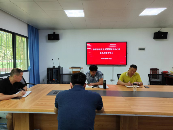 8月28日上午,体育学院党总支理论学习中心组举行2022年第五次集中学习会,集中学习习近平总书记关于坚持自我革命、全面从严治党的重要论述,提高一体推进“三不腐”能力和水平,深入推进清廉南华建设。学习活动由党总支书记黄坤荣主持。