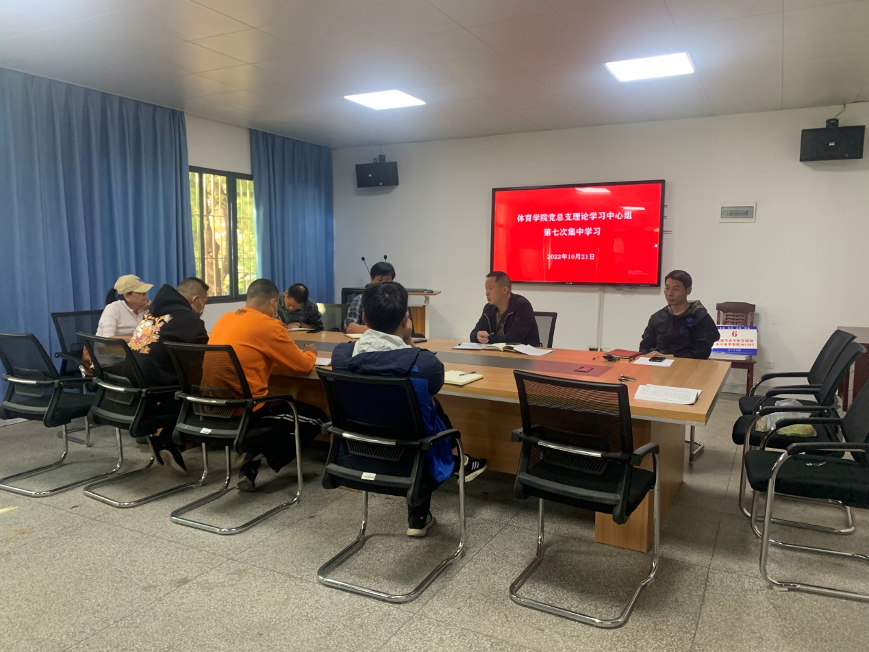 10月21日上午,体育学院党总支理论学习中心组举行2022年第七次集中学习会,深入学习领会党的二十大报告精神,全面贯彻党的教育方针,落实立德树人根本任务,汲取学校64年办学宝贵经验和精神财富,奋力推进新时代高水平大学建设。学习活动由党总支书记黄坤荣主持。