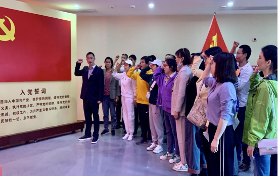 “我宣誓,我志愿加入中国共产党……”在衡阳党史馆,全体教师党员在学院党总支部书记黄坤荣的带领下整齐列队,举起右拳,庄严宣誓承诺。