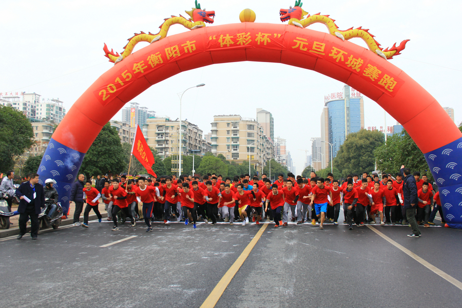 羊年伊始,衡阳人民照例用元旦环城赛跑来庆祝新年的到来。2015年元月1日早上8:30分,衡阳市2015年“体彩杯”元旦环城赛跑,在华新开发区太阳广场隆重举行。我校派出了男女共40多名运动员参加了本次活动。湖南省大运会5000米、10000米双料冠军刘健一同学不负众望,再次蝉联衡阳市元旦环城赛跑大学男子组冠军。校田径队雷晓燕、阙偶缘、左李璇同学分获大学女子组第二、六、九名。