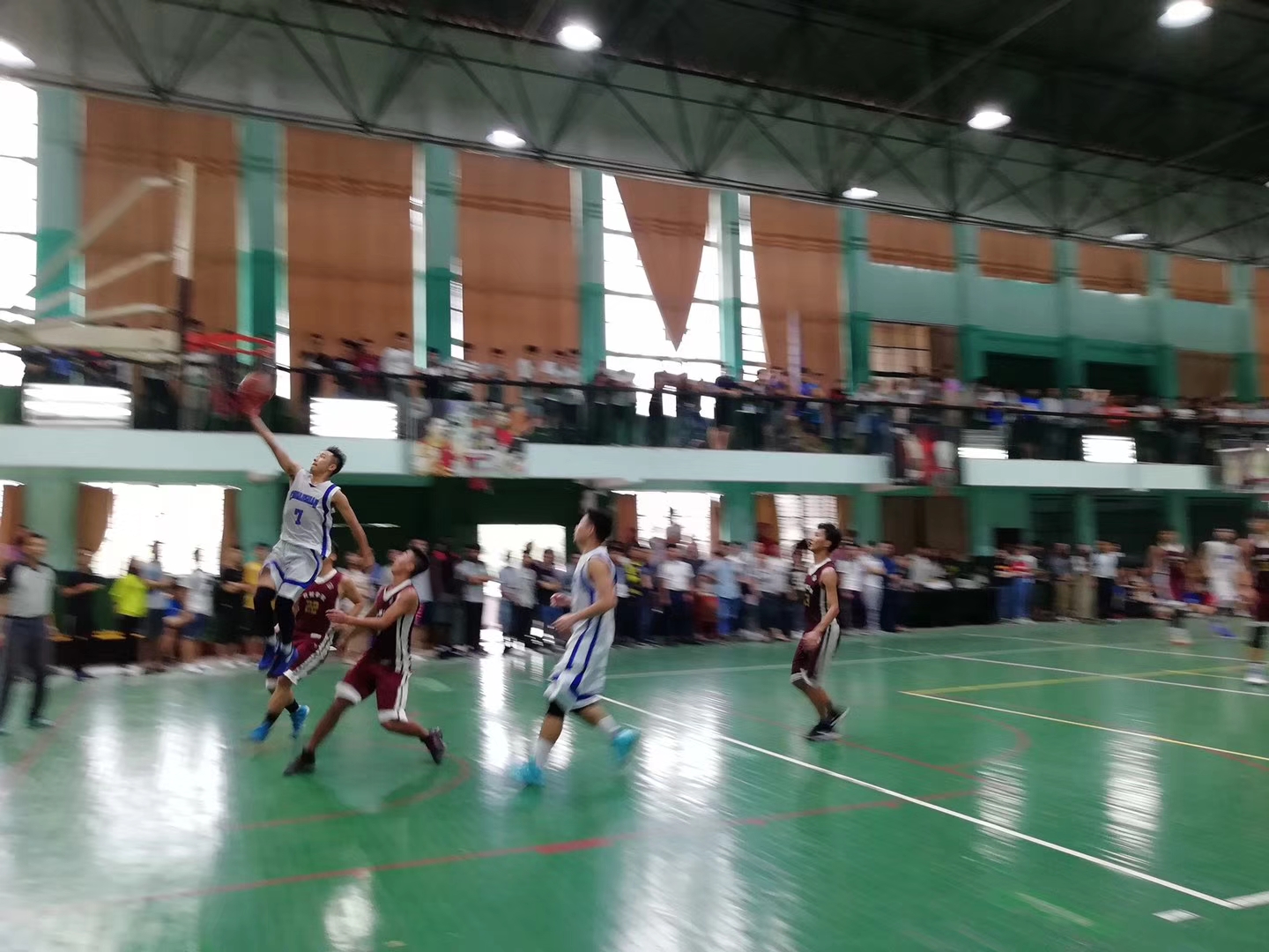 赛场上队员们本着“友谊第一、比赛第二”的原则,展开了激烈的竞争。他们奋勇拼搏,用自己的激情和汗水传达着对运动和生活的热爱,传达着友谊互助的团队精神。赛场旁的啦啦队也毫不逊色,整齐有序的喊出响亮的口号,此起彼伏。裁判员本着公平公正的原则,以严谨的态度去执裁。比赛期间虽然间或有阴雨绵绵,但丝毫不能阻止同学们对篮球的热情。