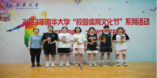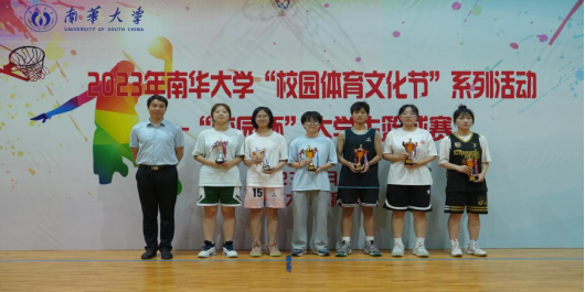 船山学院党委书记阳剑兰为男子扣篮大赛获奖运动员颁奖
