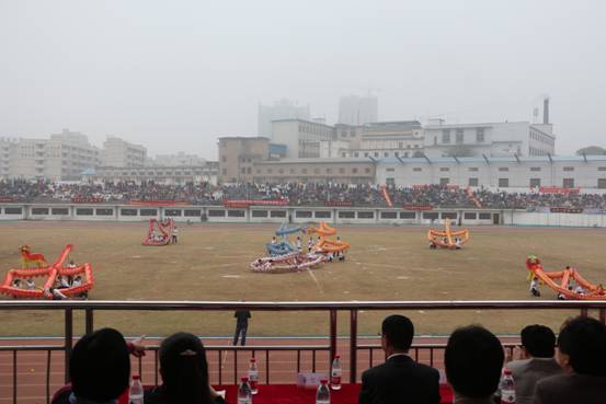 接下来的表演由来自全校7个学院73名大学生组成的7条龙,5头狮子,通过“核特色”、“医品牌”、“海军国防”、“中国梦”、“庆华诞”五个篇章,分别摆出了放射形圆环、红十字、五角星、“中国梦”、“庆55”等图形字样,完美展现南华学子奋发拼搏的精神风貌及英国上市公司365的特色。和去年相比,此次表演为庆我校55年华诞,特扩大规模,新增了两条龙队,为突破传统在喜庆民乐的基础上既加入了经典武侠歌曲,又加入了《江南style》的流行元素,给大家带来了更大气、耳目一新的精彩表演。