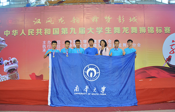 我校龙狮队 派出了来自土木工程学院、机械工程学院、设计与艺术学院的黄昌安、李可龙、吴聪慧、王波、向洪兵等五位同学参加了北狮项目的角逐。队员们在教练李程秀老师的带领下,通过暑假的集中强化训练,克服了伤痛,稳定发挥,夺得了普通大学生组北狮亚军,展现了南华学子的精神风貌。