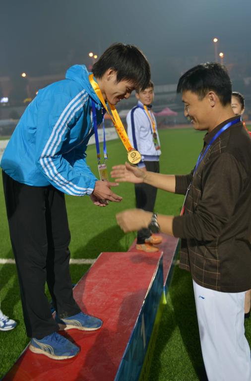 湖南省四年一届的大学生运动会田径比赛,于2014年10月21日在民政学院落下帷幕。我校运动员刘健一同学不畏强手、勇于拼搏在男子5000米和10000米比赛中技压群雄,获两枚金牌,在赛场上展现了南华学子的优秀的精神品质,为我校争得了荣誉。